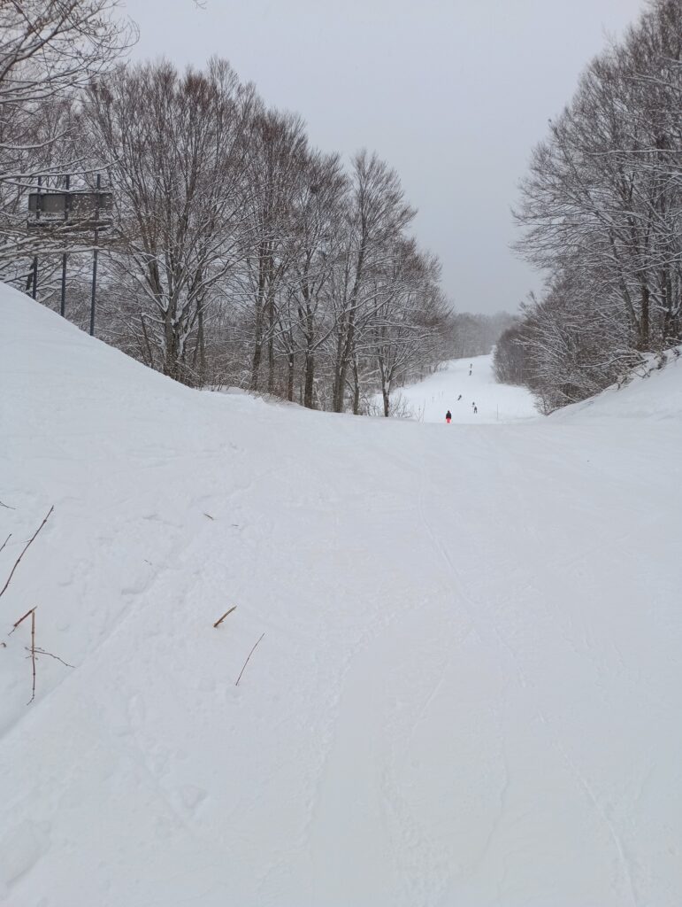 ゲレンデはアイスバーンの上に雪が積もった状況でした。