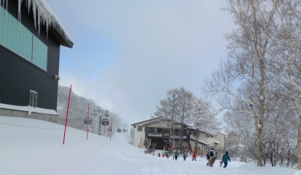 昨晩からの雪が40~50㎝積もったようなのでパウダースノーを期待しましたがかなり重たい雪でした。